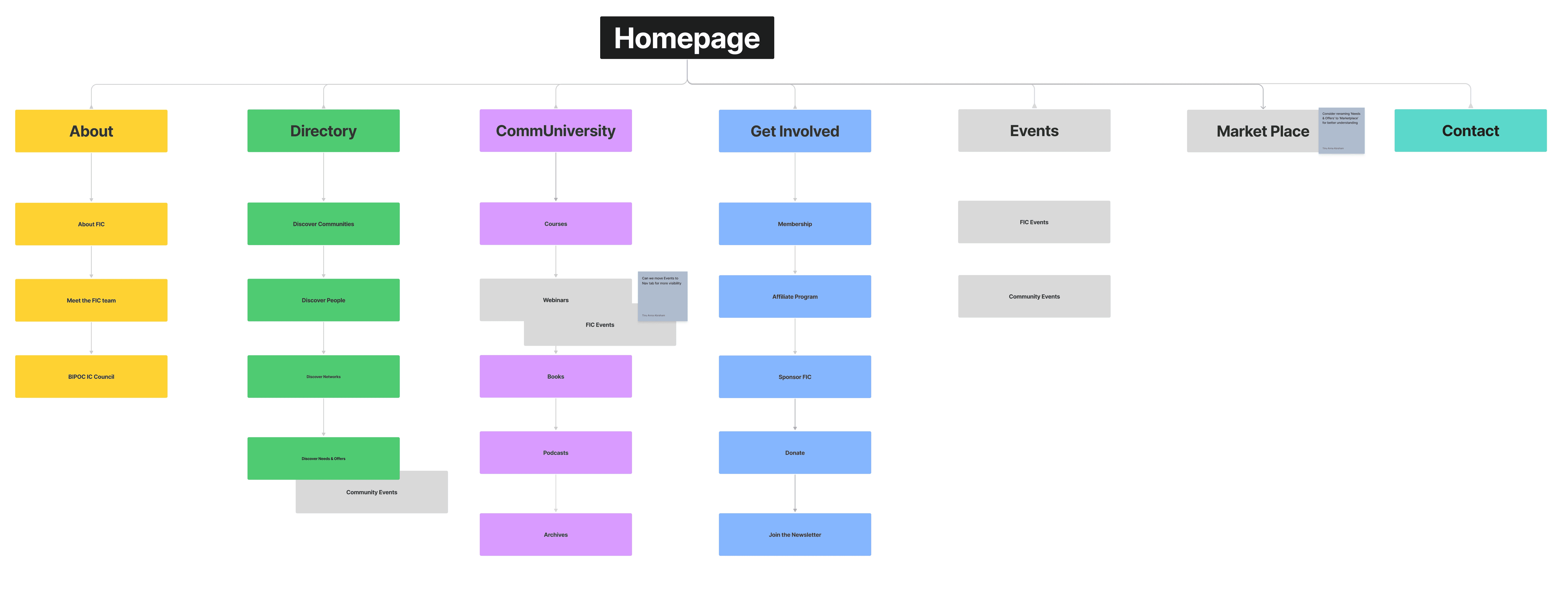 The first two weeks were devoted to establishing a research foundation. The team mapped comprehensive user journeys across distinct user types: community members, FIC members, event organizers, donors, and prospective members. We documented key pain points in their current experience and identified where the existing information architecture created friction. This foundational research provided the framework that would guide design decisions throughout the project, ensuring each iteration remained grounded in user needs rather than aesthetic preference.